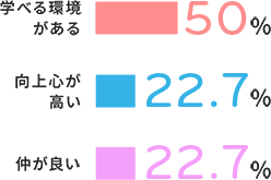 『向上心が高い仲間が多い(22.7%)』『学ぶ環境がある(50%)』という入社後の声が、私たちの文化を物語っています。