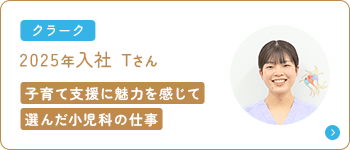看護学生のときに経験した小児科での実習は、今でも強く印象に残っています。医師や看護師たちは、子どもたちに「病院は怖い場所」という印象を与えないように、声かけやプレパレーションなどに工夫を凝らし、丁寧にケアを行っていました。その光景を目にして、私もいつか小児科で働きたいという思いが強くなり、今回このクリニックで働くことを決めました。 -